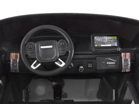 Range Rover dwuosobowy samochód dla dzieci na pilota 2,4Ghz. Duży, przestronny komfortowy suv pomieści dwójkę dzieci. Samochód został wyposażony w dwa osobne pasy, fotel pokryty eko skórą, otwierane drzwi, odpalanie z kluczyka. Atutem pojazdu jest napęd na 4 koła i wolny start. Auto wyposażone jest w 4 mocne silniki 12V 45W + 2 x akumulator żelowy 12V7AH + kluczyk, pilot 2,4Ghz dla rodzica.