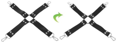 - SPECYFIKACJA: wymiary opaski (dł/szer): 19/7cm; szerokość kajdanek na ręce: 22/5cm; szerokość kajdanek na nogi: 27/5cm; waga zestawu: 470g.