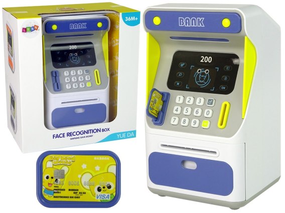 Bankomat Skarbonka Czujnik Rozpoznawania Twarzy PIN Oszczędzanie Niebieski