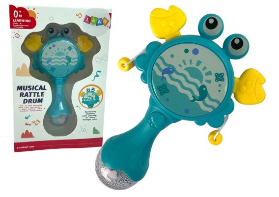 Bębenek Grzechotka Krab Dla Dzieci Światełka Melodie Niebieski