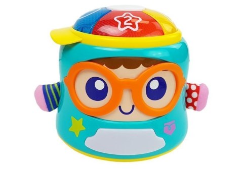 Interaktywna zabawka, w postaci bębenka, dla maluszków zapewni mnóstwo wesołej zabawy każdemu dziecku. Zabawka przedstawia uśmiechniętego chłopczyka w okularach i czapeczce. Zabawka wykonana jest w z plastiku, w uroczych kolorowych barwach. Rączki chłopczyka są wykonane z miękkiego materiału, dzięki czemu dziecko będzie mogło je chwytać. Zabawka pozytywnie wpływa na rozwój dziecka. Dzieci uczą się podążania wzrokiem za zabawką, która jest w ruchu, poznają również kształty i kolory. Przez pierwszy dotyk, dzieci odkrywają otaczający ich świat i doskonalą swoje umiejętności. Zabawka anglojęzyczna uczy poprzez zabawę, jest to świetny sposób na oswajanie dziecka z danym językiem.