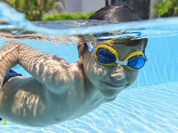 Regulowany mostek na nos oraz silikonowy pasek umożliwiają idealne dopasowanie do kształtu głowy dziecka, zapobiegając zsuwaniu się okularów podczas ruchu w wodzie.
