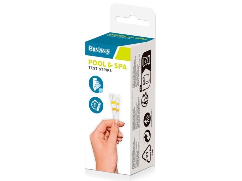 Prosty i praktyczny tester marki Bestway sprawdzi poziom pH wody w basenie ogrodowym. Po zanurzeniu paska w wodzie zmienia on kolor, a dzięki tabelce z kolorami z boku opakowania, można szybko i łatwo sprawdzić poziom każdego rodzaju substancji chemicznej obecnej w wodzie.