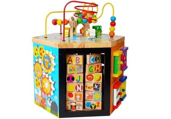 Wielofunkcyjna, kolorowa i drewniana kostka edukacyjna rozwija zdolności manualne oraz wyobraźnie maluszka. Nasz model posiada 6 funkcyjnych ścian oraz przeplatankę na górze. Każda ze ścian jest wyjątkowa, ponieważ posiada całkiem inną funkcję dla dziecka.
