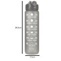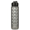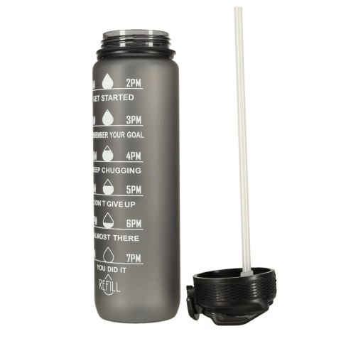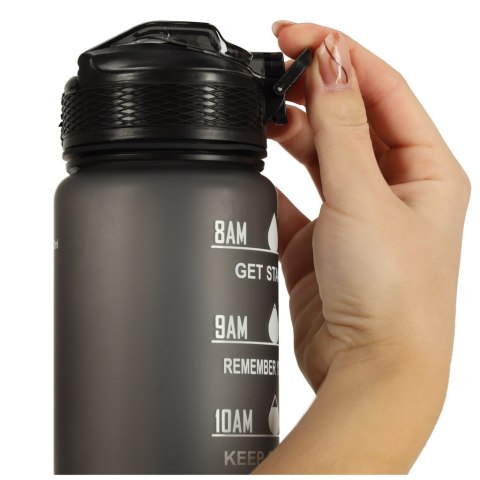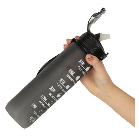 Butelka na wodę o pojemność 1 litra to idealny sposób, by pozostać nawodnionym przez cały dzień! Dzięki niej unikniesz konieczności kupowania jednorazowych butelek z wodą. Bidon wyposażony jest w praktyczny ustnik ze słomką, co sprawia, że picie z niego jest niezwykle wygodne i nie wymaga przechylania. Dodatkowo klips zabezpieczający chroni wieczko butelki przed przypadkowym otwarciem się. Miarka z godzinami i motywacyjnymi hasłami zachęca do regularnego picia wody. Wykonana została z wytrzymałego i bezpiecznego dla kontaktu z żywnością tritanu, niezawierającego BPA.