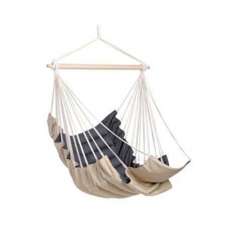 California sand AMAZONAS Amazonas Hängematten GmbH to Niemiecka firma produkująca oryginalne hamaki, huśtawki, nosidełka oraz stojaki już od 1995 roku. Charakterystyka California Fotel hamakowy w amerykańskim stylu. Posiada szeroko rozłożone siedzisko i komfortowy zintegrowany podnóżek. Można używać go obustronnie. Skład: 80% poliester, 20% przetworzonej bawełny Powierzchnia leżenia: 170x170cm Długość całkowita: 335cm Długość drążka: 110cm Waga produktu: 4,1kg Maksymalne obciążenie: 150kg Wysokość zawieszenia: co najmniej 210cm Odległość od ziemi : 40-50cm AZ-2020261