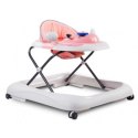 Chodzik z kierownicą - różowo szary Najważniejsze cechy produktu• wygodne siedzisko z miękkim oparciem• stopery• gumowane kółka• 2-stopniowa regulacja wysokości z podwójnym zabezpieczeniem• panel z dźwiękiem i światełkiemUlepszona blokada wysokości siedziskaUlepszony mechanizm blokady utrzymuje siedzisko w odpowiedniej pozycji. Zwolnienie blokady wymaga od rodzica wykonania dwóch czynności (podwójne zabezpieczenie), Aby zwolnić blokadę, należy ją nacisnąć i przekręcić.Wygodne siedziskoWysokie, usztywnione oparcie z miękkim wypełnieniem zapewnia dziecku komfortową i bezpieczną pozycję.ZabawaPanel z przyciskami, kierownicą i lusterkami przykuwa uwagę dziecka i zachęca do zabawy.BezpieczeństwoChodzik jest wyposażony w stopery uniemożliwiające przejazd przez próg. Stopery chronią również przed upadkiem ze schodów. Chodzik jest zgodny z normą PN-EN 71-1 i PN-EN 1273.WyglądChodzik wykonano z matowanego plastiku, co nadaje mu nowoczesny wygląd i zapobiega powstawaniu rys na jego powierzchni.Gumowane kółkaNie pozostawiają śladów na podłodze i nie rysują drewnianych podłóg. B01.019.1.3