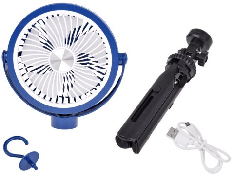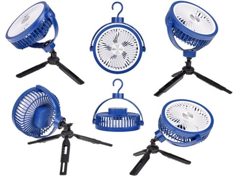 - Uniwersalność zastosowania: wiatrak można zawiesić w namiocie na haczyku, postawić na regulowanych nóżkach na biurku w pracy.