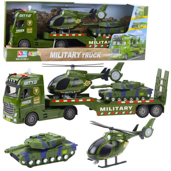 CIĘŻARÓWKA WOJSKOWA MILITARY TRUCK Z HELIKOPTEREM I CZOŁGIEM