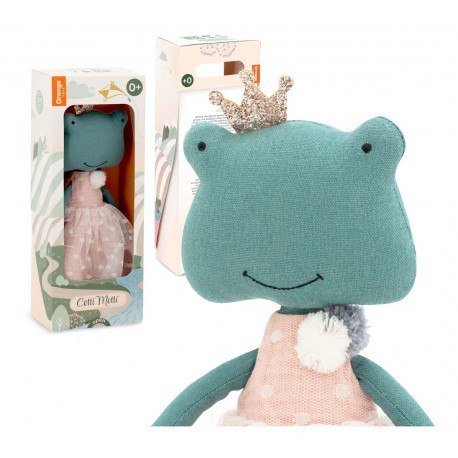 Cotti Motti Żabka Fiona - Friends Edition Charakterystyka pięknie wykonany z naturalnych materiałów bezpieczny dla najmłodszych dzieci dbałość o każdy szczegół ubranka można zdejmować estetyczne pudełko W zestawie maskotka ubranka pudełko idealne na prezent Wymiary wysokość maskotki: 29 cm wymiary opakowania: 38 cm x 15 cm x 11 cm Zabawka przeznaczona dla dzieci od 0 roku życia. Posiada atest CE. Prać ręcznie w temperaturze 30 stopni CM12-12