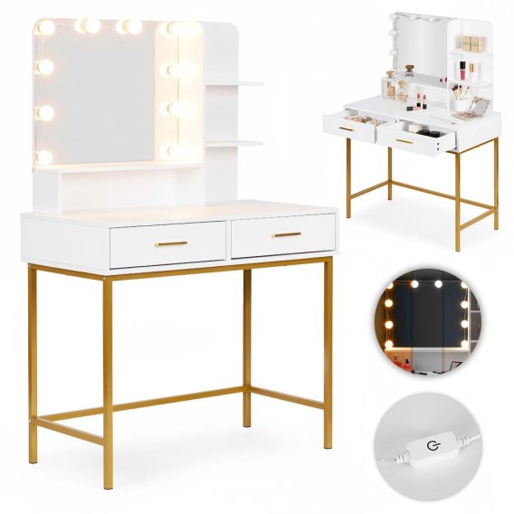 Duża toaletka kosmetyczna z lustrem i oświetleniem LED 3 barwy półki szuflady ModernHome