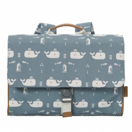 Fresk Tornister Wieloryb Blue fog Fresk to holenderski producent zachwycających zabawek, ubranek i akcesoriów dla dzieci produkowanych w zgodzie z ideą zrównoważonego rozwoju. Filozofią marki jest odpowiedzialne i przemyślane planowanie produkcji minimalizujące negatywny wpływ na nasze otoczenie. Fresk to połączenie uznanego wzornictwa i doskonałej jakości. Organiczne, naturalne materiały zapewniają komfort i ochronę środowiska. Charakterystyka Piękny i poręczny tornister Fresk dla małych uczniów. Tornister posiada pojemną komorę główną z praktyczną kieszonką i zapinaną przegródką wewnętrzną, oraz osobną przegródkę pod klapą. Idealny do przedszkola, szkoły czy na wycieczkę. Plecak zapinany jest na wygodny zatrzask, z regulowaną klamrą, posiada możliwość regulacji szelek oraz wygodny uchwyt do trzymania. W środku tornistra znajduje się miejsce na wpisanie imienia i nazwiska właściciela. Wykonany z przetworzonych butelek PET. Wymiary w przybliżeniu: 34 x 25 x 8 cm FB960-25
