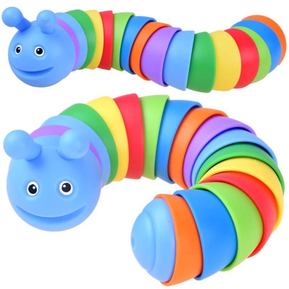 Tęczowa gąsieniczka to prosta zabawka, która sprawi mnóstwo frajdy. Gąsienica złożona jest z kilkunastu członów w różnych kolorach, które zabawnie wyginają się w każdą stronę.