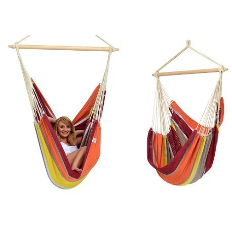 HUŚTAWKA FOTEL WISZĄCY BRASIL Acerola AMAZONAS Amazonas Hängematten GmbH to Niemiecka firma produkująca oryginalne Brazylijskie hamaki, huśtawki, nosidełka oraz stojaki już od 1995 roku. Posiada własny zakład produkcyjny w północno-wschodniej Brazylii, który jest światowej sławy centrum produkcji hamaków. Od wielu lat hamaki AMAZONAS są ręcznie robione w tradycyjny sposób przez rdzennych Brazylijczyków. Bazując na doświadczeniu i staranności wykonania, otrzymujemy produkty o najwyższej jakości i w unikalnych wzorach. Charakterystyka zawieszony na drewnianym drążku o długości 1,10m i grubości 44mm drążek wykonany przy użyciu opatentowanej technologii Drexelung ( końce są lżejsze od środka) konstrukcja zapewnia stabilny naciąg lin oraz zapobiega ich ześlizgiwaniu się w kierunku środka materiał o gramaturze 400g/m2 wykończony poczwórnym szwem poduszki NIE są częścią zestawu Zastosowanie wiszący fotel do salonu (mocowanie na haku Power Hook lub na jednym ze stojaków Amazonas) fotel do karmienia (mocowanie Power Hook lub stojak Luna lub Palmera) huśtawka ogrodowa lub na taras / balkon fotel wiszący do powieszenia na drzewie (za pomocą liny Smartrope) Akcesoria do zawieszenia huśtawki oraz stojaki dostępne są w naszym sklepie (nie są w zestawie z huśtawką). Dane techniczne powierzchnia siedzenia: około 160 x 130 cm waga produktu: około 2,7 kg maksymalne obciążenie: około 150kg materiał: 85% bawełna, 15% poliester materiał o gramaturze 400g/m2 Dla większego bezpieczeństwa: Zawsze zawieszaj sznurki huśtawki w wewnętrznych zagłębieniach drążka, a linki, na których fotel wisi w zewnętrznych zagłębieniach. Polecane sposoby montażu stojak Luna oraz stojak Palmera ( do kupienia w naszym sklepie) za pomocą haka Power Hook (do kupienia w naszym sklepie) za pomocą liny Smartrope do wieszania hamaków na drzewach ( do kupienia w naszym sklepie) AZ-2030150