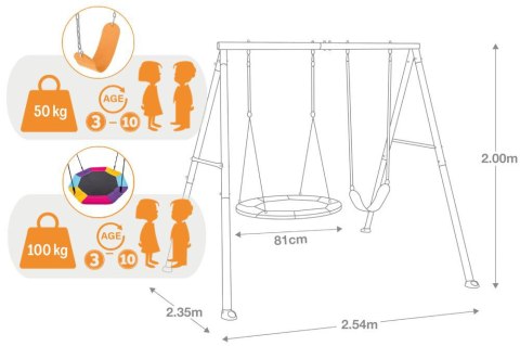 - Huśtawka bocianie gniazdo pomieści do 2 osób jednocześnie, zachęcając tym samym do wspólnej zabawy.