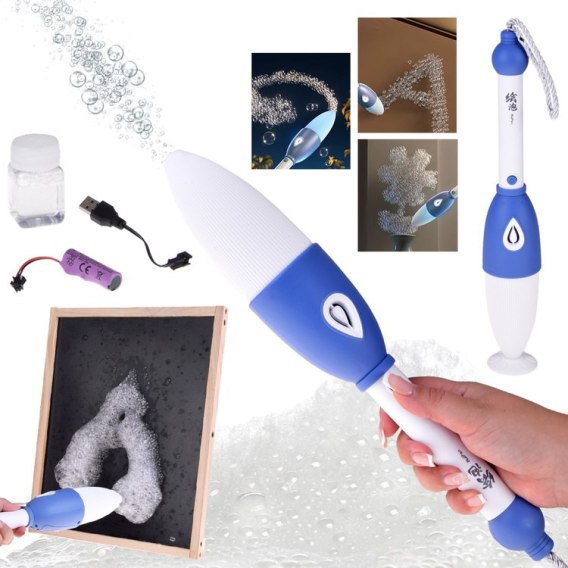 - Elektryczna dmuchawa - nie trzeba dmuchać, wystarczy nacisnąć przycisk i cieszyć się niekończącym się strumieniem baniek.