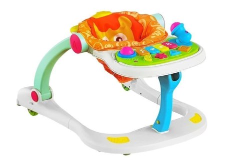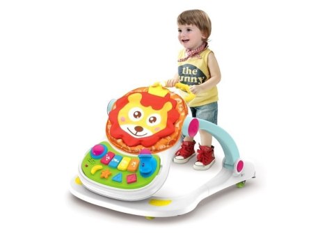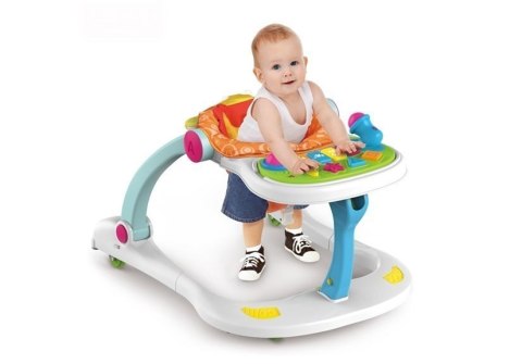 Chodzik pomoże stawiać pierwsze kroki, który następnie można przekształcić w fotelik do zabawy z panelem w zestawie. Panel posiada pianinko, różne kształty, grzechotkę. Wszystkiemu towarzyszą efekty świetlne i dźwiękowe. Sprawi dużo radości maluchom, które bawią się na siedząco — wspomagając ich rozwój i przyśpieszając naukę samodzielności.