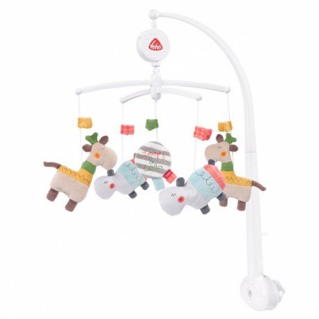 Karuzela z Pozytywką, z Kolekcji: Loopy & Lotta Zabawne Hipopotamy i śpiące Żyrafy wyruszają w ekscytującą podróż. Zabiorą Twojego maluszka do krainy snów. Mechaniczna pozytywka z włącznikiem/wyłącznikiem/ pozwala postaciom tańczyć i łagodnie uspokajać w rytmie popularnej kołysanki.W ciągu dnia tańczące postacie budzą ciekawość i zapraszają do słuchania, oglądania i podziwiania. Delikatne kolory i różnorodne powierzchnie stymulują percepcję dziecka. Figurki łatwo można usunąć podczas mycia. Uchwyt karuzeli umożliwia łatwe mocowanie. W ten sposób karuzela z pozytywką szybko staje się niezbędna na łóżeczku Twojego maluszka. Karuzela wyposażona jest w miłe w dotyku, łatwo odpinane zabawki i pozytywkę. Wzbudza ciekawość i stymuluje percepcję dziecka. Delikatne dźwięki pozytywki wyciszają i usypiają maluszka. Ręcznie nakręcana pozytywka nie wymaga stosowania baterii. Łatwa w montażu. Można prać. Rozmiar : 40 cm. Wszystkie zabawki niemieckiej marki FEHN są bezpieczne dla dzieci od 0 lat. Wykonane są z najlepszej jakości materiałów. Spełniają normy EN71, CE, badane w instytutach ""Stiftung Warentest"" lub ""Ökotest". 59021