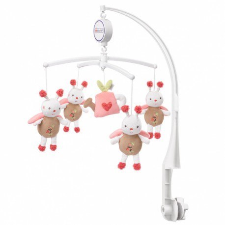 Karuzela z pozytywką, z kolekcji: Ogród Marzeń. Cztery urocze, uśmiechnięte pszczółki zabiorą Twojego maluszka do krainy snów. Mechaniczna pozytywka z włącznikiem/wyłącznikiem/ pozwala postaciom tańczyć i łagodnie uspokajać w rytmie popularnej kołysanki. W ciągu dnia tańczące postacie budzą ciekawość i zapraszają do słuchania, oglądania i podziwiania. Delikatne kolory i różnorodne powierzchnie stymulują percepcję dziecka. Figurki łatwo można usunąć podczas mycia. Uchwyt karuzeli umożliwia łatwe mocowanie. W ten sposób karuzela z pozytywką szybko staje się niezbędna przy łóżeczku Twojego maluszka. Karuzela wyposażona jest w miłe w dotyku, łatwo odpinane zabawki i pozytywkę Wzbudza ciekawość i stymuluje percepcję dziecka Delikatne dźwięki pozytywki wyciszają i usypiają maluszka Ręcznie nakręcana pozytywka nie wymaga stosowania baterii Łatwa w montażu Można prać. Rozmiar : 40 cm Wszystkie zabawki niemieckiej marki FEHN są bezpieczne dla dzieci od 0 lat, wykonane są z najlepszej jakości materiałów spełniają normy EN71, CE, badane w instytutach ""Stiftung Warentest"" lub ""Ökotest" 68122