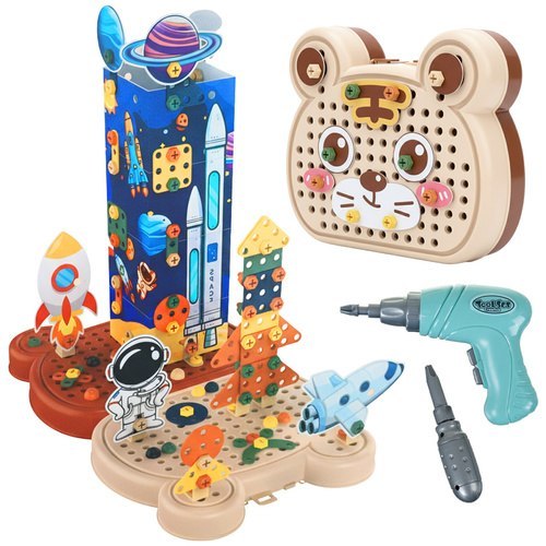 - Elektryczna wkrętarka - prawdziwe narzędzie w małych rączkach! Pomaga wkręcać i wykręcać elementy, rozwijając koordynację i zdolności manualne.