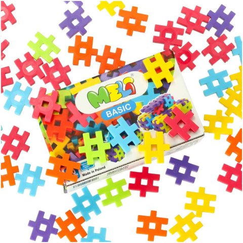 Opakowanie skrywa 50 sztuk nowatorskich klocków przeznaczonych do twórczej zabawy. Można z nich tworzyć dowolne kształty według własnego pomysłu, a łatwa obsługa polegająca na łączeniu elementów zachęca do zabawy. Kształt puzzli oraz bogata kolorystyka przyciągnie uwagę dzieci. Zbyt duża liczba elementów na początkowym etapie może nieco rozproszyć dziecko, dlatego na początek zabawy z kreatywnymi klockami MELI proponujemy opakowanie zawierające 50 genialnych elementów. Wykorzystaliście do zabawy wszystkie? Mamy dla Was dobrą wiadomość - serię BASIC można, dowolnie łączyć pomnażając radość z zabawy!