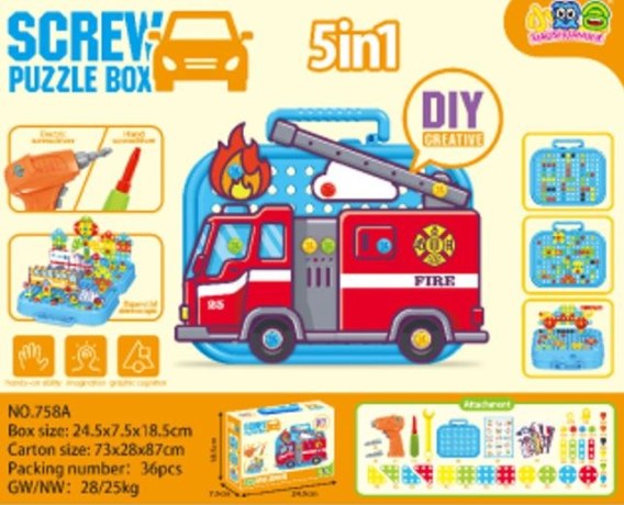KLOCKI KONSTRUKCYJNE UKŁADANKA W WALIZCE KREATYWNA MOZAIKA + WKRĘTARKA POJAZDY
