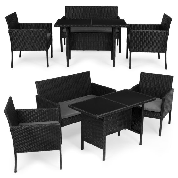 Komplet mebli ogrodowych z technorattanu ławka stolik krzesła czarny MultiGarden