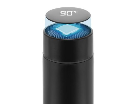 Na nakrętce kubka termicznego znajduje się wyświetlacz LED, który wskazuje temperaturę znajdującej się w środku cieczy. Wystarczy jeden dotyk aby pokazała się na nim aktualna temperatura.