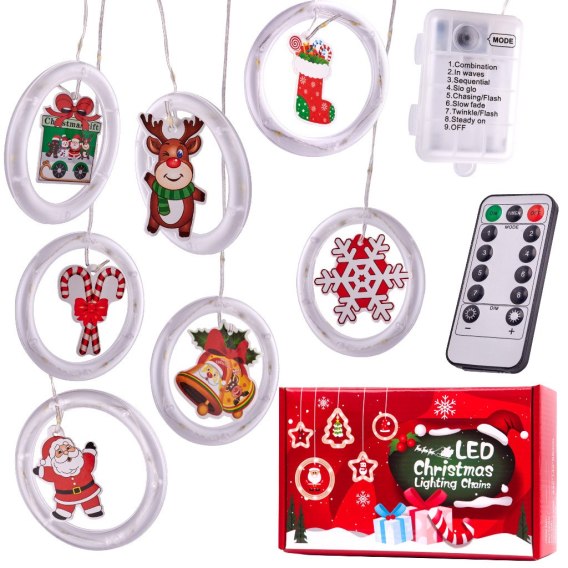 LAMPKI LED KURTYNA Z OBRAZKAMI BOŻE NARODZENIE W KÓŁKACH 3M 10 ŻARÓWEK NA BATERIE PILOT
