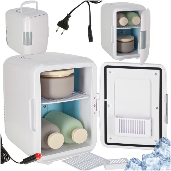 • Lodówka turystyczna elektryczna samochodowa mini na jedzenie kosmetyki grzanie chłodzenie 2w1 4L biała