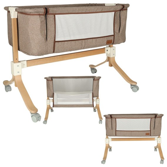 Łóżeczko dostawka dla niemowląt dzieci kołyska drewniana na kółkach kojec brązowy