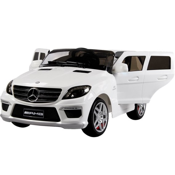AUTO MERCEDES ML 63 AMG z kołami EVA ( miękkie koła jeżdżą cicho) zasilane na 12 V z napędem na dwa koła oraz otwieranymi wysokimi drzwiami zachwyci nie jednego przyszłego kierowcę. Dzięki zastosowanym najmocniejszym silnikom 45 W, auto jeździ po nierównym terenie bez żadnych problemów, a dodatkowo silniki te są bardzo dobrej jakości.