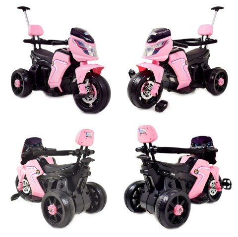 Najnowszy produkt jednej z najlepszych fabryk produkującej pojazdy. Nowe rozwiązanie mające w sobie 3 pojazdy - motorek na akumulator, rowerek oraz pchacz z rączką. Specjalne sprzęgło znajdujące się w środku pojazdu samo odłączy lub podłączy silnik napędowy w przypadku gdy dziecko zacznie np. pedałować pedałami. Jest to najnowsze rozwiązanie zapewniające bezpieczeństwo dla silnika napędowego.