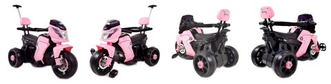 | Dodatkowe funkcje: | Dźwięki jazdy motoru, światła, jest jednocześnie rowerkiem i pchaczem, Posiada regulowaną wysokość rączki |
