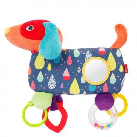 Maskotka Edukacyjna, Piesek z Kolekcji: Kolorowi Maskotka Edukacyjna, Piesek z Kolekcji: Kolorowi PrzyjacieleZabawka oferuje wszystko co sprawia, że serca małych odkrywców biją szybciej. Różnorodność kolorów i mieszanka miękkiego materiału, zapraszają do dotykania i głaskania. Zastosowanie postaci Pieska oraz bezpieczne lusterko, szczególnie pobudzają wrażenia dotykowe i wzrokowe. Maskotka jest zawsze czymś nowym. Zachęca do chwytania i wyzwala chęć zabawy. W małym, bezpiecznym lusterku można się przeglądać. Grzechotka, piszczałka i szeleszczący papier, wzbudzają ciekawość. Gryzaczek łagodzi ból podczas fazy ząbkowania dziecka. Dzięki praktycznemu zapięciu na rzep, maskotkę bezpiecznie mocujemy do fotelika dziecięcego, wózka, kojca i łóżeczka. Szybko staje się więc wiernym towarzyszem w domu i w podróży zawsze zapewniając dobry nastrój! Maskotka wykonana jest z wielu, miłych w dotyku, materiałów. Rozwija logiczne myślenie, koncentrację, małą motorykę. Wzbudza ciekawość i stymuluje percepcję dziecka. Gryzaczek łagodzi ból podczas ząbkowania. Grzechotka, piszczałka i bezpieczne lusterko i szeleszczący papier, wyzwalają chęć zabawy. Łatwa w montażu. Można prać ręcznie. Wymiary produktu: 32 cm x 24 cm x 5 cm. Wszystkie zabawki niemieckiej marki FEHN są bezpieczne dla dzieci od 0 lat. Wykonane są z najlepszej jakości materiałów. Spełniają normy EN71, CE, badane w instytutach Stiftung Warentest lub Ökotest.