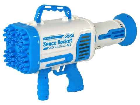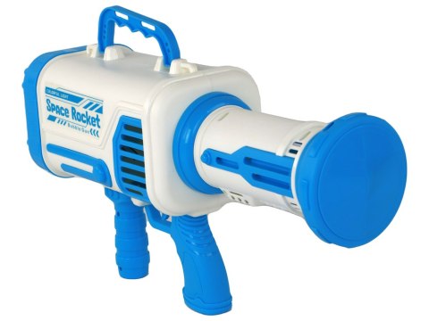 Karabin do baniek mydlanych w kolorze biało-niebieskim, ma przyciągający wzrok design. Jest on zaprojektowany w taki sposób, aby przypominał prawdziwy karabin, ale zamiast strzelać pociskami, tworzy piękne bańki mydlane.