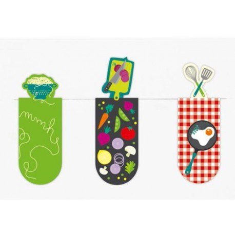 Zakładki Magnetyczne do Książek, Gotowanie Pięknie ilustrowane zakładki z wystającymi, ozdobnymi elementami. Idealne do zaznaczania ostatnio czytanych lub ulubionych fragmentów książek. Doskonale sprawdzają się w indeksowaniu notatek, dokumentów w biurze, w szkole i w domu. Każdy zestaw zawiera 3 zakładki o różnych wzorach. Wymiary : 5,5 cm x 2 cm x 0,1 cm. 31121