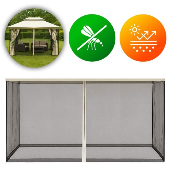 Moskitiera do pawilonu ogrodowego 3x4 m siatka z zamkami błyskawicznymi MultiGarden