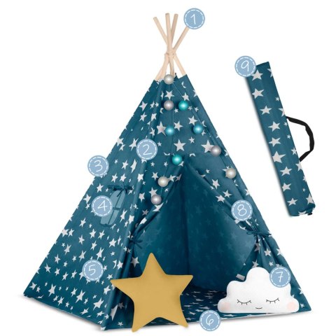 Namiot tipi dla dzieci ze światełkami Nukido - niebieski