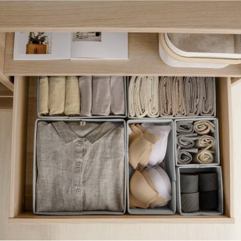 Organizer do szuflady, na bieliznę skarpetki i akcesoria, kompletny zestaw 6 pojemników RUHHY!