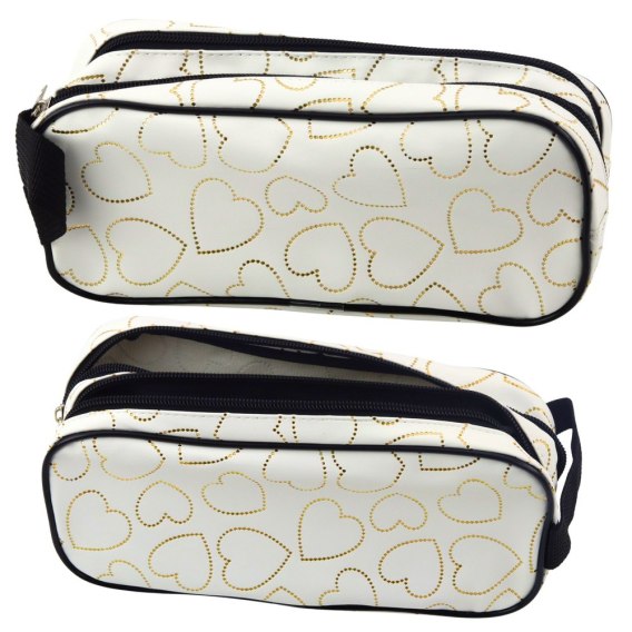 Piórnik Szkolny Biurowy Dwukomorowy Złote Serca Biały 23,5x10 cm