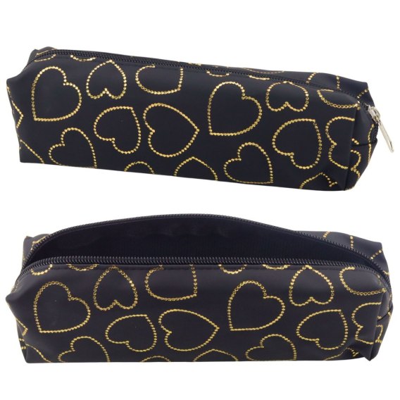 Piórnik Szkolny Biurowy Jednokomorowy Złote Serca Czarny 20x6,5 cm