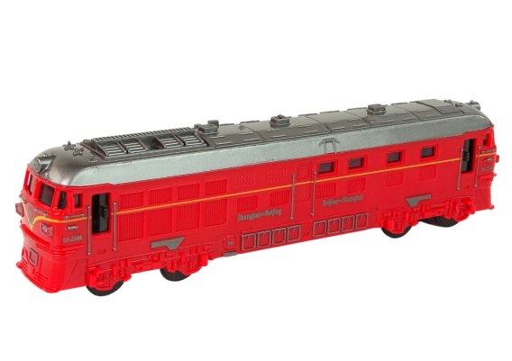 Ten czerwony pociąg dla dzieci to pełen detali model z napędem frykcyjnym, światłami i dźwiękami. Rozwija wyobraźnię i bawi. 23 cm x 5,5 cm x 3,5 cm. Baterie: 2 x 1.5V (brak w zestawie).