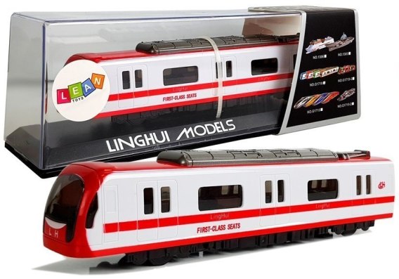 Pociąg jest utrzymany w kolorystyce czerwono- białej. Posiada napęd frykcyjny, wystarczy nacisnąć, pociągnąć do tyłu, puścić i obserwować jak mknie w przód.