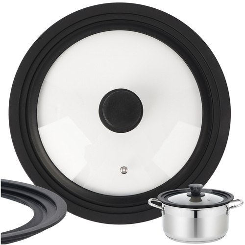 Pokrywka Uniwersalna 3w1 Ruhhy Szklana z Silikonowym Rantem do Garnków i Patelni 24/26/28 cm