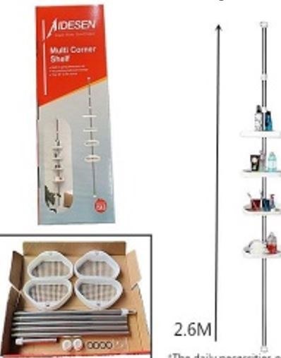 PÓŁKA ŁAZIENKOWA NAROŻNA POD PRYSZNIC TELESKOPOWA REGULOWANA WYSOKOŚĆ 250CM