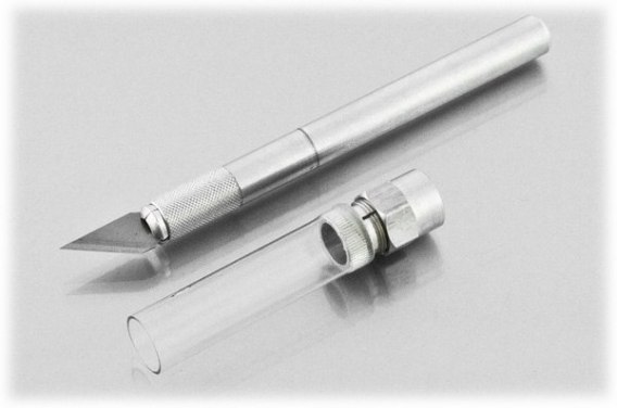 - W zestawie: nóż #1 z zamontowanym ostrzem #11 oraz specjalna, zakręcana plastikowa nakładka na ostrze
