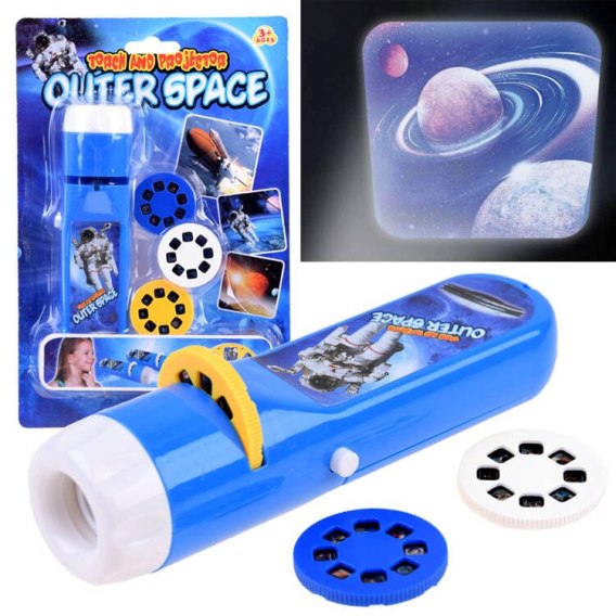 Poręczny projektor do wyświetlania slajdów o tematyce kosmosu zapewne zyska uznanie w oczach każdego małego astronauty. Poręczny rzutnik dzięki niewielkiemu gabarytowi zawsze można mieć przy sobie np: w pokoju podczas nocnego zasypiania, pod namiotem na wakacjach, u babci, dziadka podczas spędzania weekendu. Dzięki tej zabawce wyobraźnia dziecka będzie mogła tworzyć nieziemskie historie, które będą mogły być opatrzone obrazkami wyświetlanymi na ścianie lub suficie. Cudne, gwiezdne opowieści o drodze mlecznej, czarnej dziurze, gwiezdnej galaktyce, planetach...
