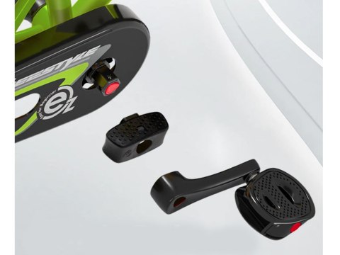 - bezproblemowy montaż: Jest w 98% wstępnie zmontowany. Opatentowane korby i podnóżek mają beznarzędziową konstrukcję z szybkim zwalnianiem. Jednym kliknięciem przycisku rower EZ może przełączać się między rowerkiem biegowym a rowerem na pedały.