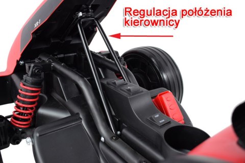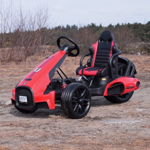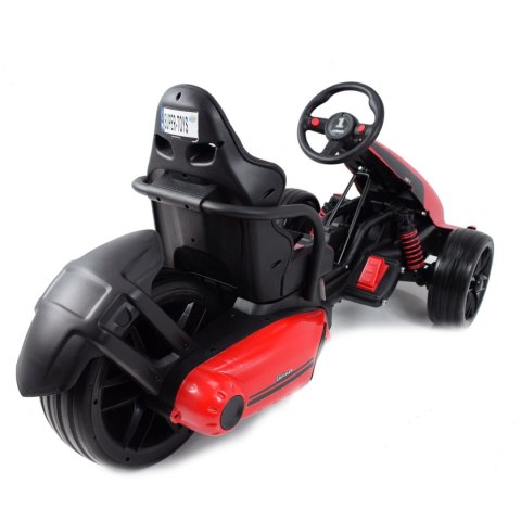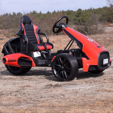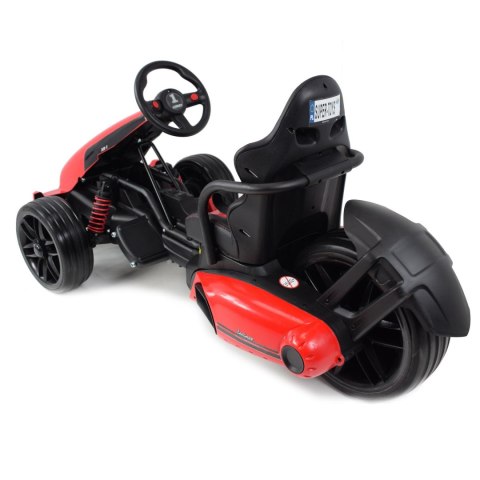 Jeden z najpopularniejszych i najlepszych gokartów na akumulator. Jest duży, wygodny i dodatkowo  szybki - dwie prędkości. Duże gumowe  koła EVA   koła zapewniają pełen komfort jazdy. Pojazd posiada metalową ramę oraz regulowaną kolumnę kierownicy.